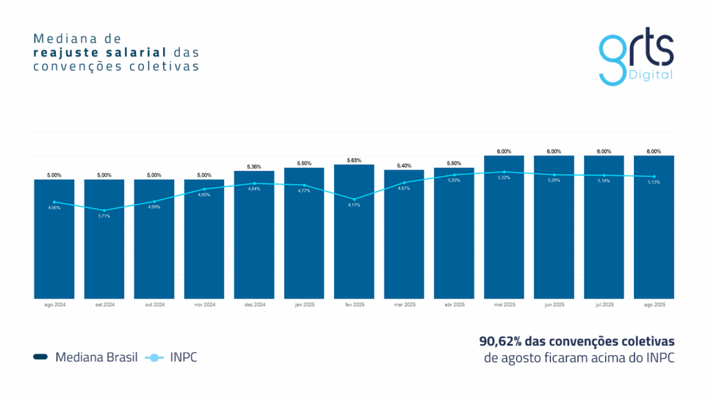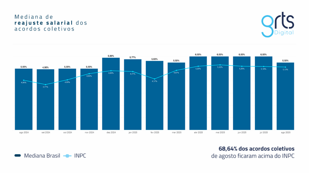 • Acordos Coletivos: 5,5% (0,32 p.p. acima do INPC de julho de 2025)